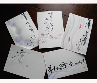 それぞれに個性を生かして、素敵な暑中見舞いを書いていらっしゃいましたよ。