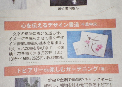 今回のよみうり文化センターでの講座について、新聞に載せていただきました。