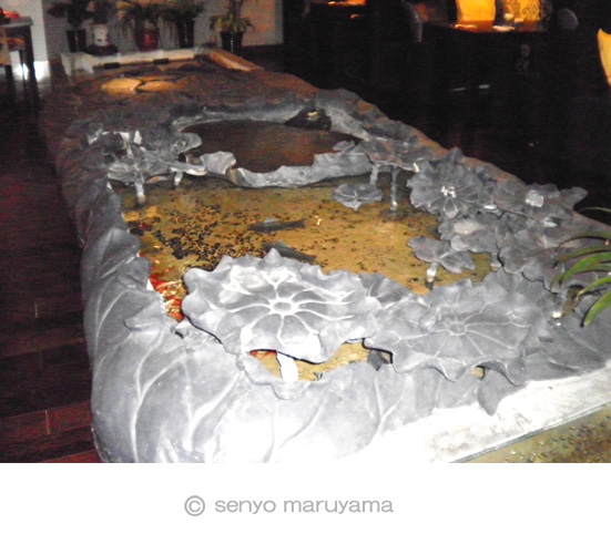 同じく栄宝斎内のレストランにある池のオブジェ。